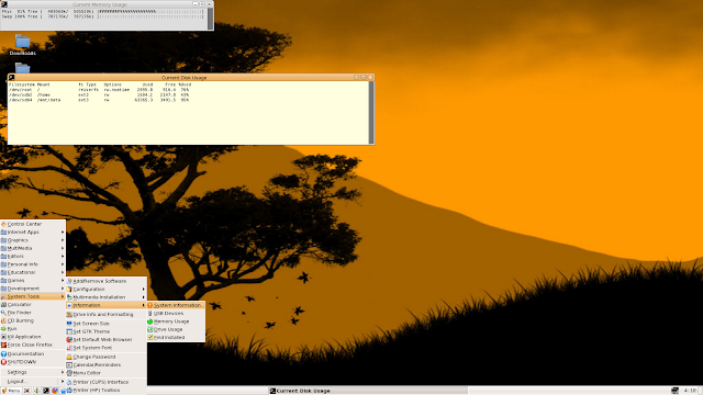There are Chrome, gftp, qBittorrent, xchat and Putty for your networking needs, a twitter app but strangely no email client. In the graphics section we have geequie, the Gimp, and what seems to be a few custom tools or scripts to take screenshots in various sizes and a tool for monitor calibration. Xmms handles your audio needs and comes with a beautiful black/orange skin to fit with the overall theme, and smplayer is there for your viewing pleasure. Under System tools we have a multimedia installer that will warn you about patents and your responsibility to the law in your country. Interestingly these are not pulled over the net but seem to already be present on the system as the script proceeded to build the packages and notified it was compiling files. There are plenty more applications like RecordMyDesktop, a CD and a DVD Ripper, audio and video editors. OpenOffice Writer (3.1), Nedit, Ghostscript and ePdfviewer are there for your office needs, as is Osmo for calendaring and RedNotebook for jotting things down. Most notably in the Development section we have Scite, QT Designer and a basic html editor called HTMLpage. There are also two calculators and K3b for disc burning.