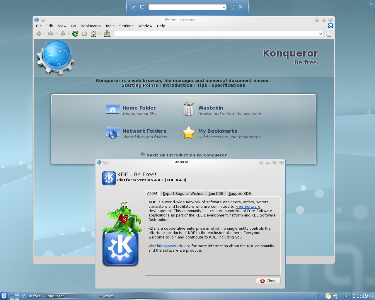 Like in Kongoni GNU/Linux I found myself surprised at how responsive and complete the desktop appeared. It even ran well within the 320MB Ram originally allocated to LXDE. I have to say that with KDE 4.4.3 they have finally arrived at something I would consider using again if I wasn't so firmly entrenched into Xfce4 and other lighter window managers by now. Anyway, I really enjoyed the new KDE this time, but I'm unsure if this is just a Slackware feature or if it's now just as fast and responsive on all distributions. Probably not, but that will be the underlying system's fault then, just as there were always differences with performance between Linux distributions.