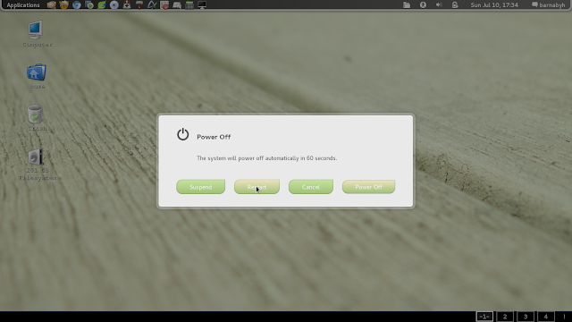 | An Applications menu is replacing the Activities button, notifications coming up above the panel |