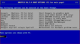 Find some screenshots of 6.4 with cool hackerish wallpaper here, or download my text file with Knoppix cheat codes.