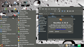 The VMware entry in the menu leads to Shared folders in the virtual edition, and I've been generally surprised by how much is included, even Tomboy, and with it the Mono libraries, Rhythmbox for music, Totem as movie player, a desktop recorder, Gespeaker, a disc burner, a little known web browser called Conkeror that was inspired by GNU Emacs and can be navigated completely with keyboard shortcuts only (it opens the user manual at start up, giving overview of keys and movement), bareFTP, the Transmission bittorrent client and more.