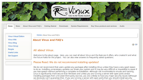 The web site is now located at vinuxproject.org which is why a link to vinux.org.uk on the desktop of my older copy of Vinux did not work anymore. I found the site easy to navigate and friendly looking. You got the trademark vine leaves and logo in the banner at the top, with a short summary on the main page and links to the other sections below the banner and to the left.