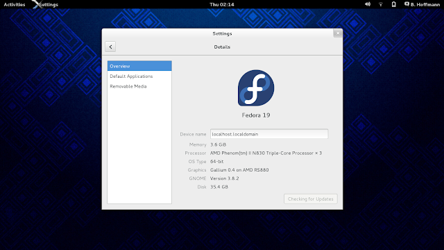 For the sake of brevity I have hived this section off into a separate post, Installing Fedora 19. Let's just say that among other flaws button arrangement in the GUI is highly illogical and inconsistent, leaving you to scan every inch of every screen for fear of missing an important entry. Huge portions of the screen are wasted on grey nothingness. You change in and out of different philosophies of how to accomplish a task, leading to semi-transparent overlays for some but not for others. Partitioning is unintuitive and the whole process makes users go back and forth between steps that at times even use different terminology for the same thing. Chances are you will experience a crash or two and have to start all over. Some buttons are so huge they seem made for touch devices, others can barely be seen when squinting.