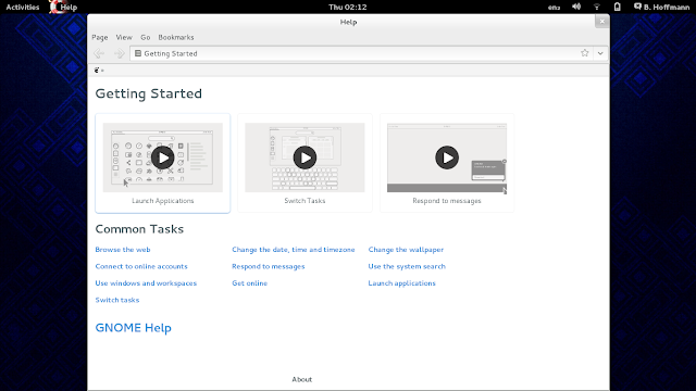 You get the familiar Fedora boot menu and then the logo on black background that is slowly filling up to indicate the OS loading. The boot sequence was no match for CrunchBang which boots in around 9s from SSD but did not feel overly long. In any case, any slowdown is usually down to me forgetting the password to unlock the drives. New users get a nice intro on how to accomplish common tasks, complete with videos.