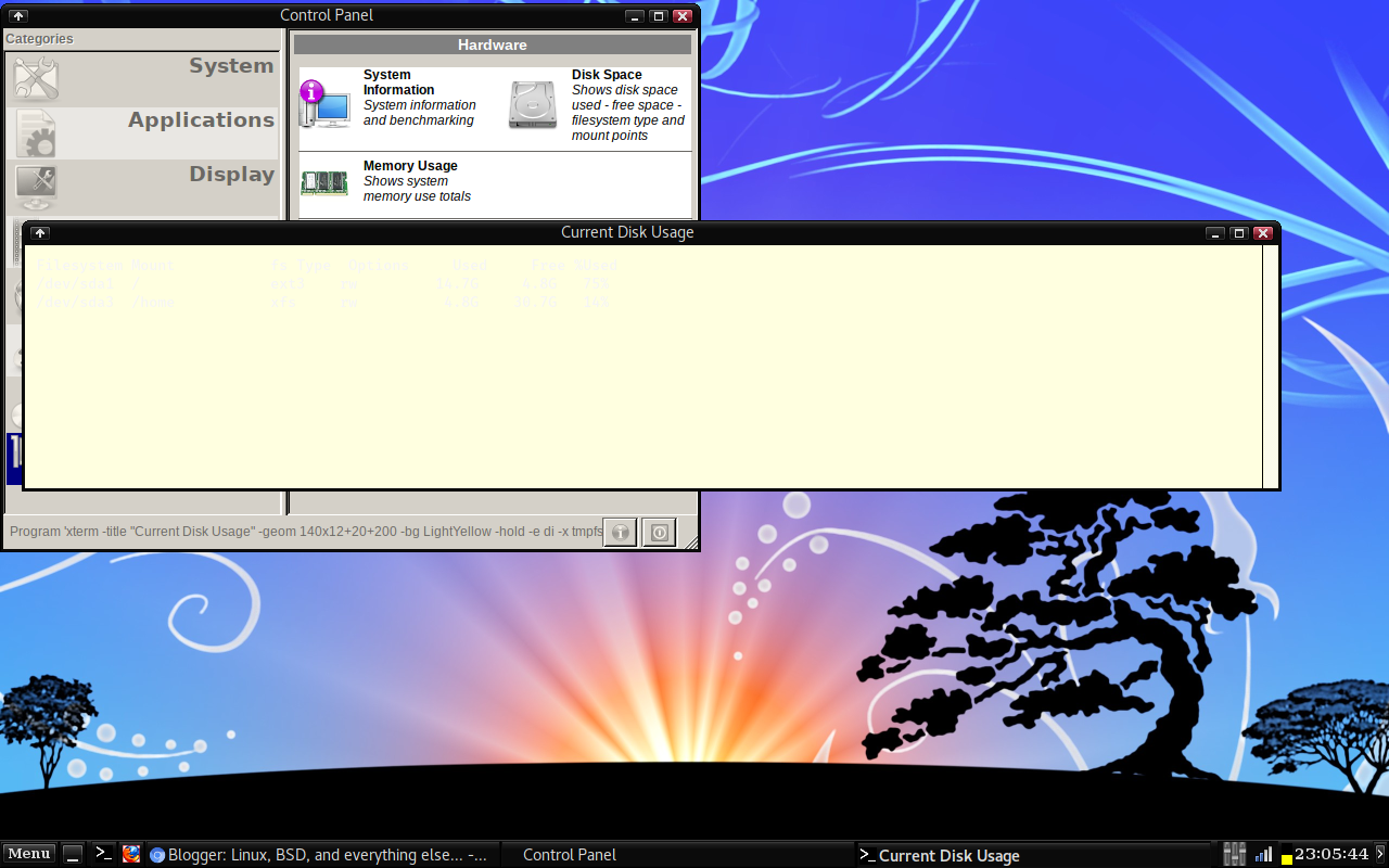 Absolute also features many smaller and custom utilities to ease admin life, again rather like Salix and AntiX with which I would compare it here. Many will just open a terminal window and show the output of a command. One of them is memory usage under the system information settings - notice the 89% free on a laptop with 2GB RAM. Nice. That leaves lots for the other jobs that really matter.