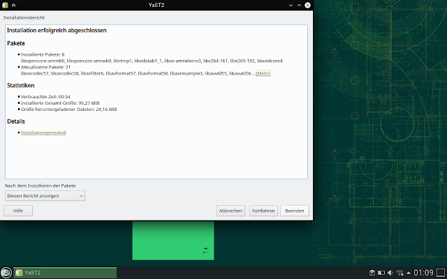 Kodi exited straight away, I assumed this was down to running in a virtual window. Although, to be fair, LibreELEC did not have those problems. Or perhaps it's due to it still being pre-release at the time? Whatever, we shall try again later. Just don't expect to watch movies with Kodi inside a virtualized Leap, but that would be overkill anyway for such a powerful system. There are more appropriate and slimmer bases for that.