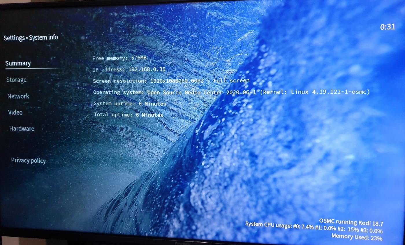 OSMC strikes me as the more commercial offering. In general it worked well and has a lot to offer like additional options to import licenses to enable DRM and more efficient decoding. It streamed media through my chosen movie plugins just as well as any Kodi install. It used slightly more RAM than LibreELEC, around 30 MB more, but still ran comfortably even on a 3A+ with 512 MB with smooth playback, fluid navigation and RAM to spare.
