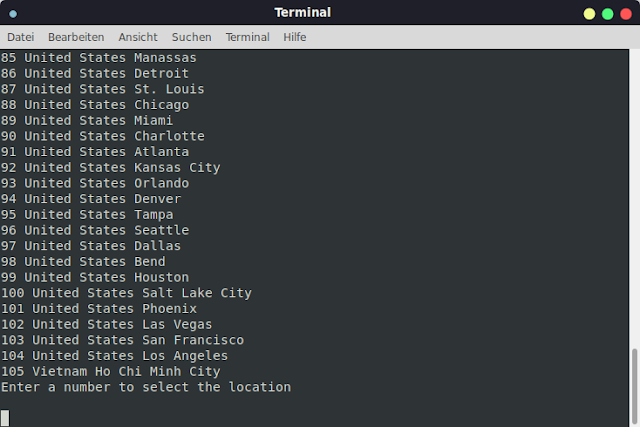 Positive is that the command line client gives us a numbered list of currently 105 locations, you enter the number and connect. This way we have the ability to choose a particular city and not just a country. They also have more locations in Germany if that's what you need, not only the overused data centers in Frankfurt that everybody offers. They only use RAM-disk servers and at less than $2 a month for a regular 24-month plan, usually with additional months thrown in at a sale, dirt cheap. Good at streaming and with better speed and no drops or sudden interruptions. Recommended because of the price/performance ratio.