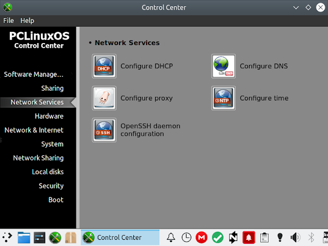 3.) The Control Center inherited from their parent that like SUSE's YaST allows to configure the deeper levels of the system, from hardware aspects to DNS and proxies to the timeout of the boot loader. But with other distributions tracing back to Mandrake using the same control center and having in part developed it further it isn't any longer a unique and distinguishing factor and the user base for all these four distributions is rather small. In comparison to its cousins PCLOS looks like a hobbyists project with a weird choice of colors.